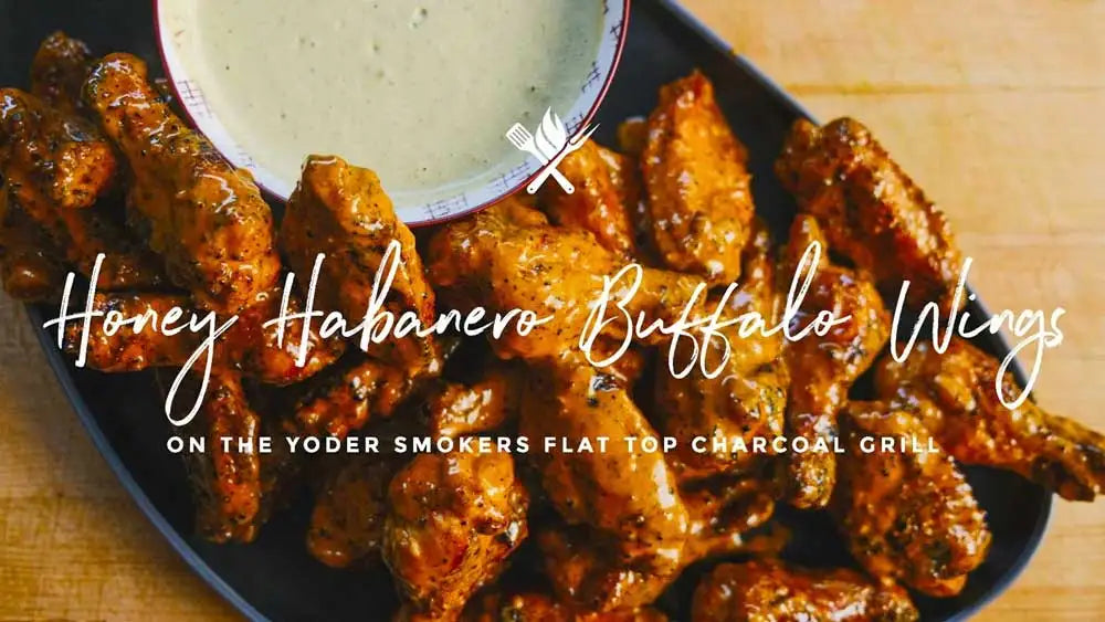No game day is complete without chicken wings, so for the big game Chef Tom is turning up the heat with these reverse seared Honey Habanero Buffalo Wings, cooked over charcoal in the Yoder Smokers Adjustable Flat Top Charcoal Grill!