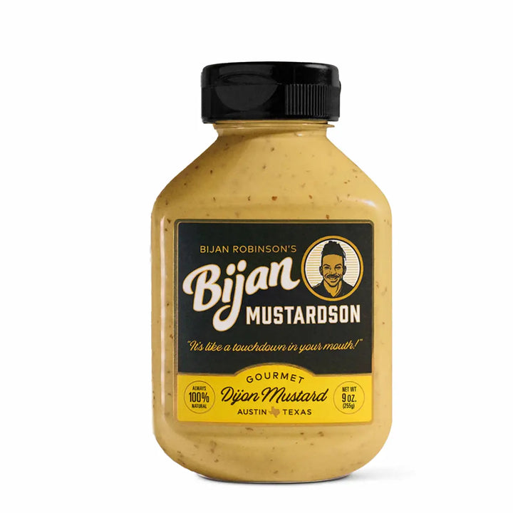 Bring home a gourmet condiment with real flavor and personality in the form of Bijan Mustardson Dijon Mustard. Created in collaboration with NFL running back Bijan Robinson, this premium mustard delivers a smooth, rich texture and a bold Texas-style kick in every bite.
