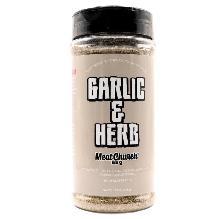 Add gourmet flavor to everything you grill with Meat Church Garlic & Herb Seasoning. This 12 oz shaker is packed with a bold, aromatic blend of garlic, herbs, and spices that elevate meats, veggies, and even pasta to crave-worthy status. Whether you're roasting chicken, searing steaks, or tossing grilled potatoes, this seasoning delivers a savory, balanced kick without overpowering the natural taste of your food.